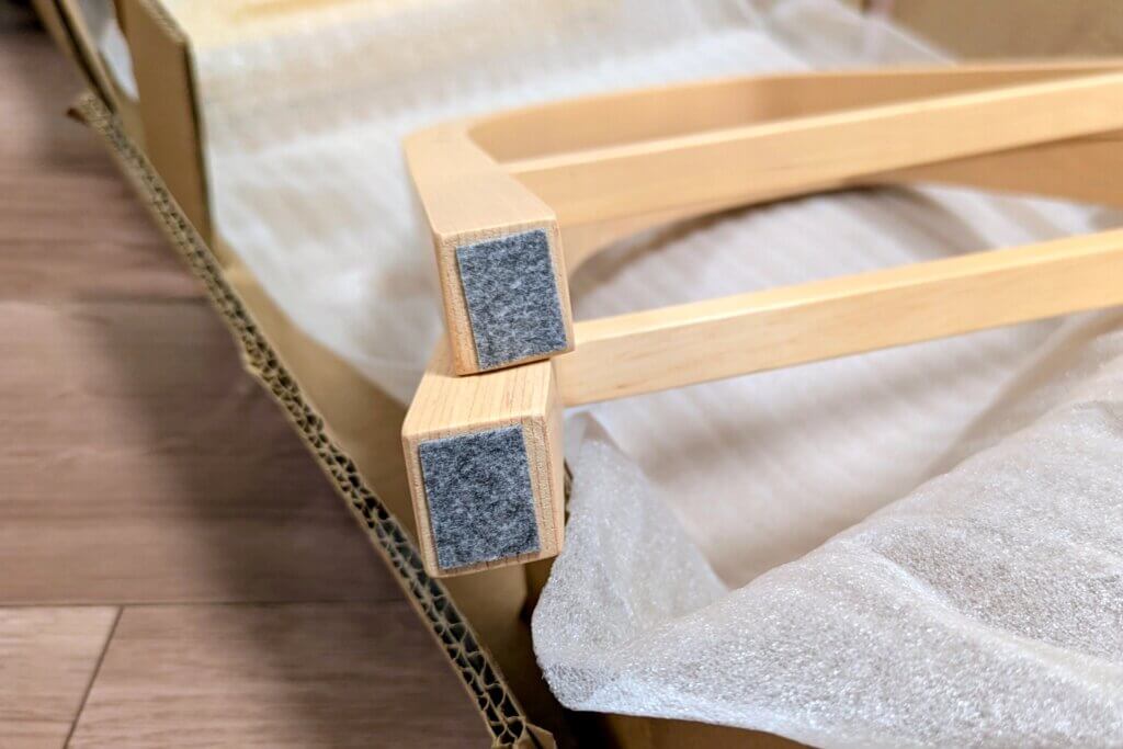 椅子の脚の裏にはじめから傷防止のフェルトが貼ってあるのも神対応でした。軽い椅子なのでりーちゃんでも持ち上げて運べるんですけどね!
