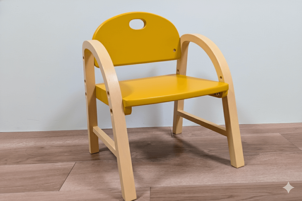 全部が木でできているので、よくあるキャラもののビニール椅子と違って、座面がボロボロ剥がれたり破れたりの心配もありませんよ。