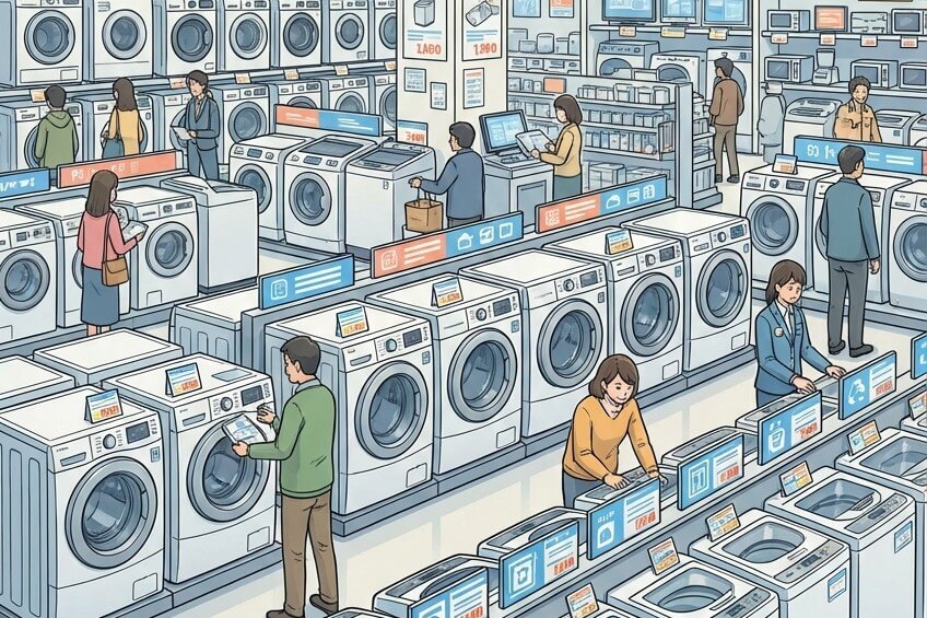 どの洗濯機にするかをまだ決めかねていたある日、たまたま新宿のビックカメラを通りがかったので実物を見てみることにしたんです。