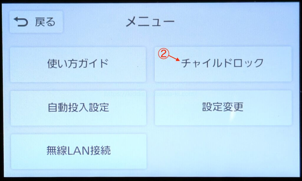 ②「チャイルドロック」をクリック